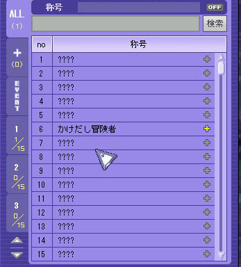 んで、知らん間に「称号」とかいうモンが実装されてまして、
