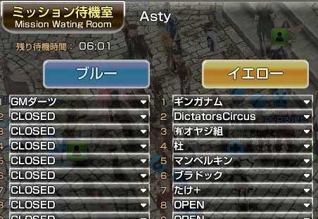 幸い順番が遅かったのもあり、参加予定者として名簿に並んでたメンバでinしてる人に片っ端から声かけて、参加出来る人にきてもらってこんな感じ。