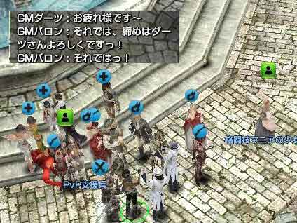 それで最後のチームの試合中らしいんですが、GM様は外に居る状態だったので、とことんいぢり倒してみたり。というか、こんなコトやってんのAstyの奴らだけってのはいいんだか悪いんだか…。